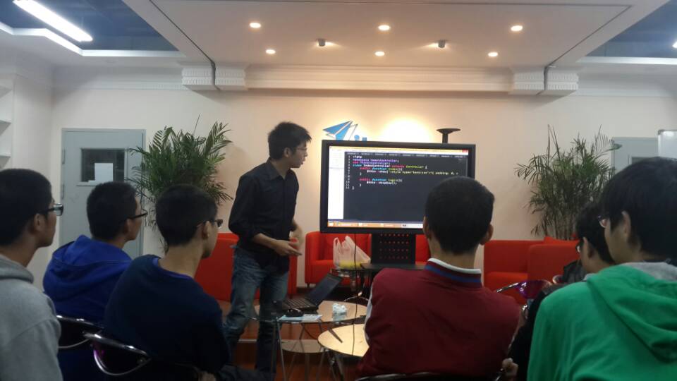 又是一年国庆时,许多同学已经陆陆续续离开了校园,然而假日的诱惑抵挡不住IHOME团队成员的热情,IHOME梦想家园内仍然灯火通明,人头攒动。7:00,讲座准时开始。钟宇老师从客户端如何请求一个URL作为切入点,为同学们讲解了网站响应用户请求的整个过程。接着,钟老师向同学们详细地介绍了设计一个网站所需的几部分工作。钟老师以ihome网站和JPush为例解释了前端的概念,并向同学们介绍了能够方便地实现响应式布局、对移动设备支持良好的前端框架Bootstrap。紧接着,钟老师详细讲述了ihome正在使用的的后端PHP框架——ThinkPHP的特点,并重点强调了其类AOP和OOP的编程特点以及对ORM的支持。为了使讲解更显生动,钟宇老师亲自构造了一个简单的网页,向同学们具体演示了如何使用MVC模式编程和几种不同的URL访问模式的效果。为了使大家更加了解IHOME 的结构,钟老师简要地介绍了ihome的分布式服务器的配置。