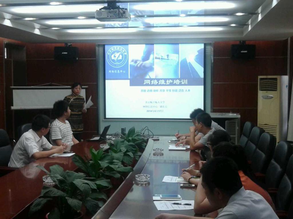 2014年6月17日下午,网络信息中心受后勤保障处邀请,在后勤保障处办公楼202会议室,为后勤集团各单位组织网络技术及维护培训,主要讲解网络基础知识及故障排查技巧等,后勤保障处十余人参加本次微培训。