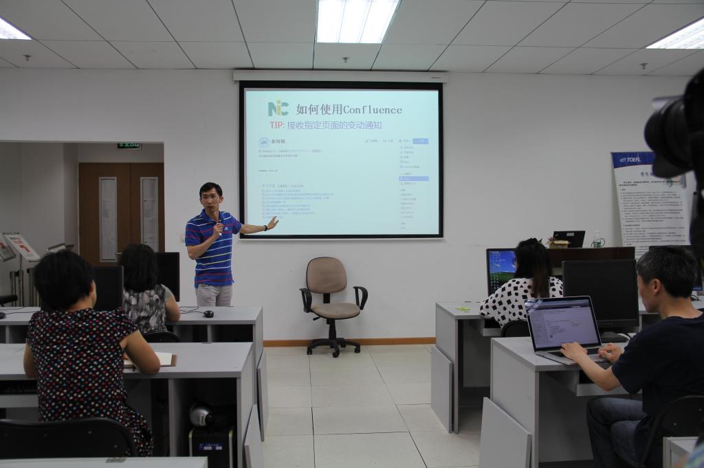 2014年6月27日下午四点半,网络信息中心在新主楼G座214教室举办“文档协同服务confluence功能介绍”的微培训。参加本次培训的老师主要来自航空学院、图书馆、审计处以及继教学院。